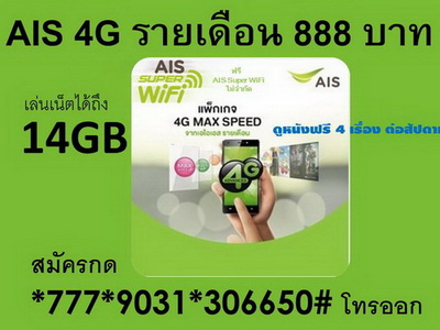 โปรเน็ต AIS 4G รายเดือน 888 บาท