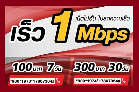 +++เน็ตทรู 1 Mbps 7 วัน 100 บาท (รวมภาษี 107 บาท) ใช้งานได้ไม่จำกัดปริมาณ และ ความเร็วไม่ลด กดสมัครได้เลย *900*1974*17807364#[b/] กดโทรออก