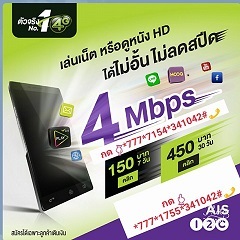 โปรเน็ต AIS 4 Mbps รายสัปดาห์ 150 บาท สมัครกด*777*7154*341042#โทรออก รายละเอียด.สามารถใช้งานอินเทอร์เน็ต AIS ที่ความเร็วสูงสุด 4 Mbps[4096 Kbps] ที่ความเร็วเน็ตไม่ลดสปีด ตลอดอายุการใช้งาน ราคารวมภาษี= 160.50 บาท