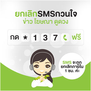 ยกเลิกได้โดยกด *137 โทรออกฟรี เลือกเมนู "ยกเลิก SMS ข่าว ดูดวง และอื่นๆที่เสียค่าบริการ กด 2" รอรับข้อความยืนยัน SMS จะถูกยกเลิกภายใน 1 ชั่วโมง หากยกเลิกไปแล้วยังได้รับ SMS อยู่ ให้ตรวจสอบว่า SMS ส่งมาจากบริษัท, องค์กร, ธนาคาร, แบรนด์สินค้า หรือร้านค้า ที่ท่านเคยให้ข้อมูลไว้หรือไม่ โดยสังเกตจากชื่อผู้ส่ง ซึ่ง SMS ประเภทนี้จะต้องติดต่อผู้ส่ง เพื่อยกเลิกโดยตรง จะไม่สามารถยกเลิกผ่าน *137 ได้ -------------------------------------------------------------- แพ็กเสริมแนะนำ เอไอเอส ดูหนังHD คลิปHD ฟังเพลงเล่นเกมส์ 99บาท/7วัน,150บาท/30วัน
