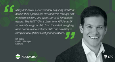 เจฟฟ์ เบตส์ ผู้จัดการ Kepware Product กล่าวว่า ผู้ใช้ KEPServerEX จำนวนมากได้ข้อมูลอุตสาหกรรมในสภาพแวดล้อมการดำเนินงานที่ส่งมาจากเซ็นเซอร์อัจฉริยะ และโอเพ่นซอร์ส หรืออุปกรณ์ขนาดเล็ก ไดร์เวอร์ MQTT Client และ KEPServerEX เพิ่มข้อมูลจากอุปกรณ์ดังกล่าวได้อย่างไร้รอยต่อ เปิดทางให้ผู้ใช้เข้าถึงข้อมูลแบบเรียลไทม์ ทั้งยังให้ภาพที่ชัดเจนเกี่ยวกับการดำเนินงานภายในโรงงาน