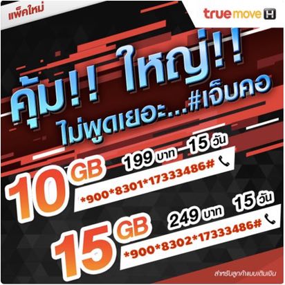 ไม่พูดเยอะ...#เจ็บคอ สมัครเลยเน็ตทรูเต็มสปีด 10GB 25 วัน 199 บาท, 15GB 15 วัน 249 บาท