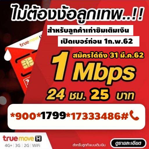 โปรเน็ตทรูไม่อั้น เน็ต 1 Mbps 24 ชม. 25 บาท เท่านั้น สมัครกด *900*1799*17336012#โทรออก