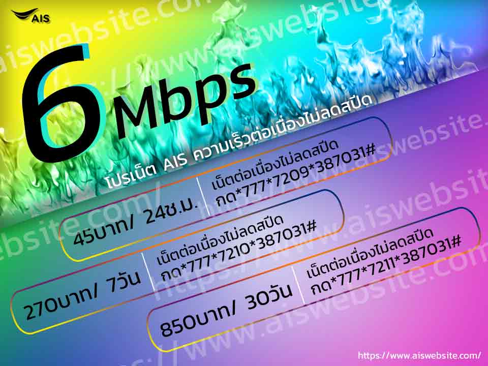 เน็ตAIS 4Mbps 650บาท/ 30วัน. (รวมภาษีราคา=696บาท) เน็ตไม่ลดสปีด กด *777*7159*387031# โทรออก กดสมัครผ่านมือถือที่นี่ กดสมัคร