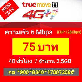 เน็ต ทรู 75 บาท 2 วัน เน็ตสปีด 6 Mbps