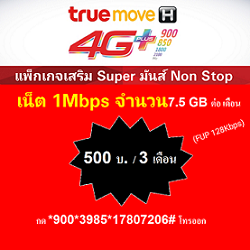 เน็ต ทรู 3 เดือน 500 บาท และ 600 บาท 6 เดือน [ 1 Mbps]
