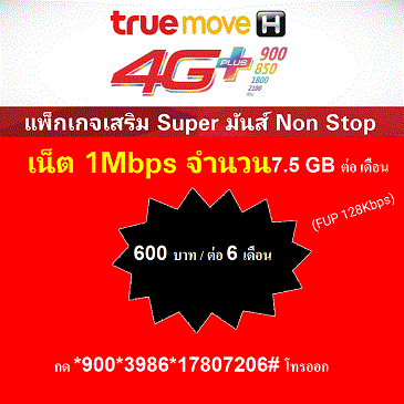 เน็ต ทรู 6 เดือน 600 บาท เน็ต 1 Mbps เน็ตซูเปอร์มันส์