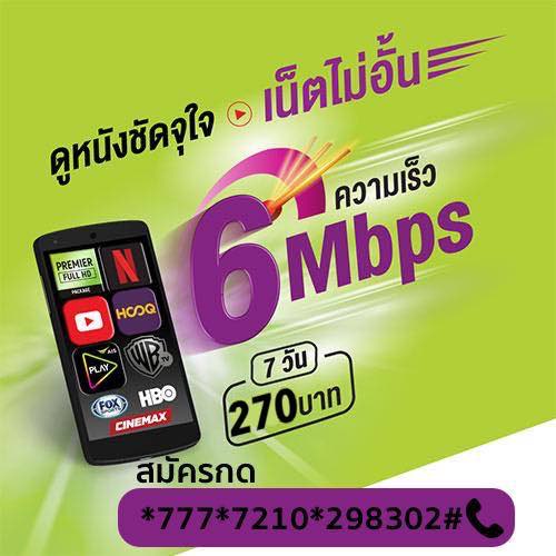 เน็ตเอไอเอสรายสัปดาห์ 270 บาท เน็ตไม่อั้น 6 Mbps สมัครกด*777*7210*298302#โทรออก ดูเพิ่มเติม https://pronetaisone2call.blogspot.com/2019/10/270-6-mbps.html