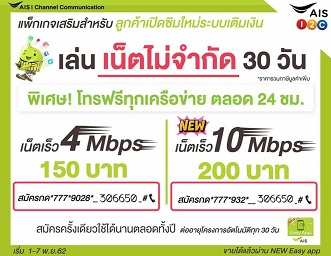 เน็ต AIS เปิดซิมใหม่ เดือน ละ 200 บาทและ 150 บาท พ.ย.62 [เปิดซิมใหม่]