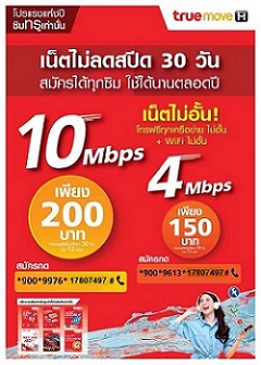 รายละเอียด : โปรเปิดซิมใหม่ทรูเติมเงิน 200 บาท 10Mbps