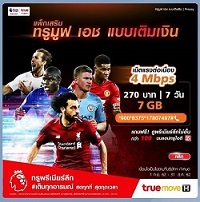 โปรทรูเล่นเน็ตต่อเนื่อง 4Mbps 20GB ทรู พรีเมียร์ลีก
