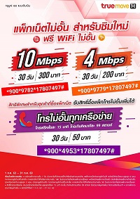หมายเหตุ : - สมัครแพ็กเกจภายใน 7 วันที่เปิดเบอร์ เฉพาะลูกค้าที่ใช้ซิม 4G NET SIM, Social 4g+ , สบาย , Super Fun , Super Free Net , ยกก๊วน ตำบล , Mangalaba sim , Suasadei sim , โปรเพลิน , ซิมเสริมดวง , ซิมศรีอโยธยา , ซิมโปรแรง ทุกเครื่องนาทีละบาท , ซิม 4G+ eSports , ซิมโดนใจ, ซิมฮัลโหล , ซิม TrueID, ซิมสุดพิเศษ , ซิมพร้อมแพ็กเกสริมและลูกค้าย้ายค่ายเบอร์เดิม