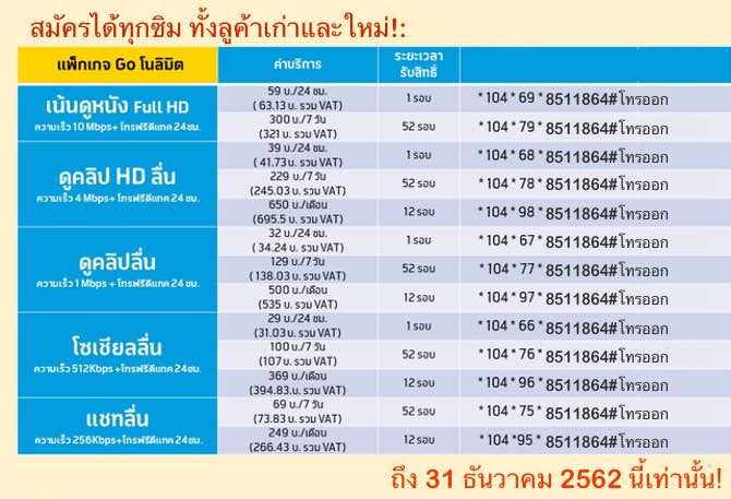รายละเอียดเพิ่มเติม: - สมัครได้ทุกซิมทั้งลูกค้าเก่า และลูกกค้าใหม่ สมัครได้ถึง 31 ธันวาคม 2562 เท่านั้น!