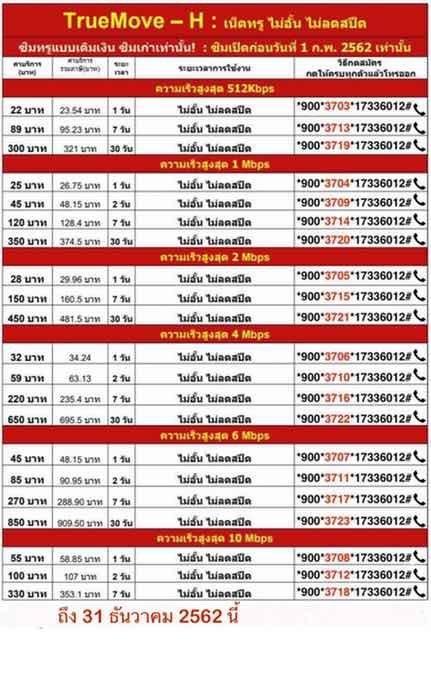 โปรเน็ตทรู ไม่ลดสปีด รายเดือน เร็ว 4 Mbps 650 บาท เล่นได้ไม่อั้น 30 วัน สมัครกด*900*3722*17336012#โทรออก .