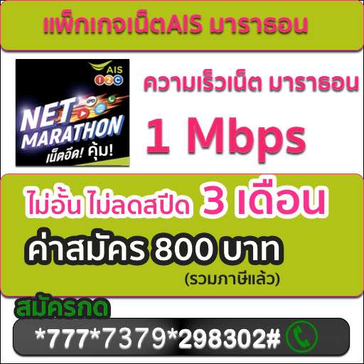 สำหรับลูกค้าเปิดเบอร์ก่อน 1 ก.พ.62 เท่านั้น!! เน็ตมาราธอน AIS 12Call ความเร็ว 1 Mbps ไม่ลดสปีด เพียง 800 บาท ใช้นาน 3 เดือน สมัครกด*777*7379*298302#โทรออก รายละเอียด: - ใข้เน็ต 3G/4G ไม่อั้น ความเร็วสูงสุด 1 Mbps ไม่ลดสปีด - ระยะเวลาใช้งาน 90 วัน - ค่าสมัคร 800 บาท(รวมภาษีแล้ว)