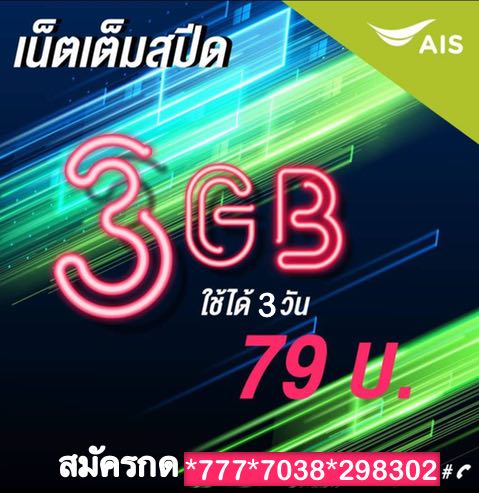 เน็ตเอไอเอส วันทูคอล 3 วัน 79 บาท เน็ตแรงเต็มสปีด! 3GB