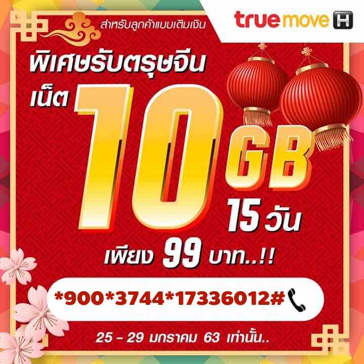 พิเศษ! เน็ตทรูแรงเต็มสปีด 10 GB 15 วัน เพียง 99 บาท สมัครกด*900*3744*17336012#โทรออก