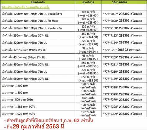 รายละเอียด: - ค่าสมัครยังไม่รวมภาษีมูลค่าเพิ่ม 7 % - เฉพาะลูกค้าที่เปิดเบอร์ก่อน 1 กุมภาพันธ์ 2562 เท่านั้น - สมัครได้ถึง 29 กุมภาพันธ์ 2563 นี้