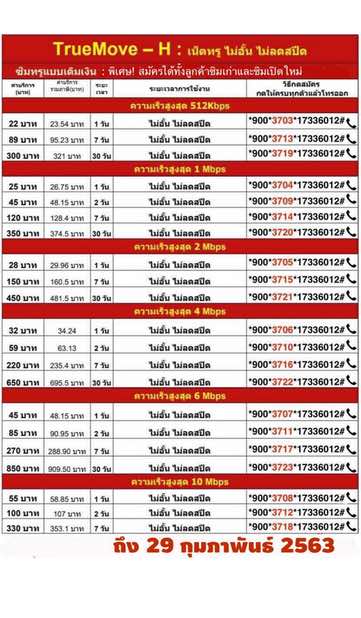 โปรเน็ตทรู ไม่ลดสปีด รายเดือน เร็ว 4 Mbps 650 บาท เล่นได้ไม่อั้น 30 วัน สมัครกด*900*3722*17336012#โทรออก .