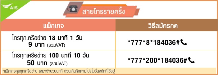 คีย์หลัก : เน็ต AIS ฟรีโทร,โปรโทร AIS,เน็ตวันทูคอลพร้อมโทรฟรี,โทรฟรีเบอร์ AIS,โปรเน็ต+โทร AIS,AIS เน็ตไม่อั้น พร้อมโทรฟรี