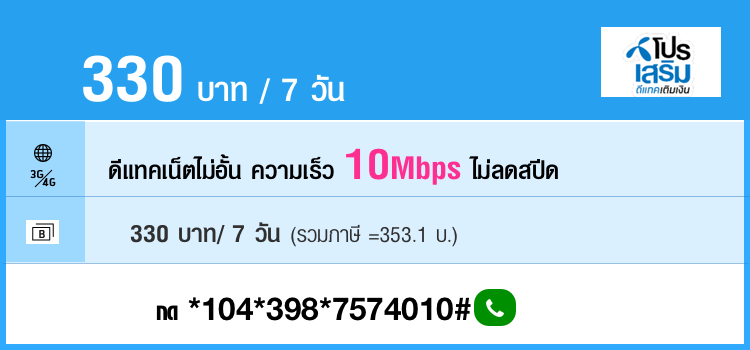 แพ็กเกจแนะนำ เน็ตดีแทคไม่อั้นไม่ลดสปีด 10Mbps