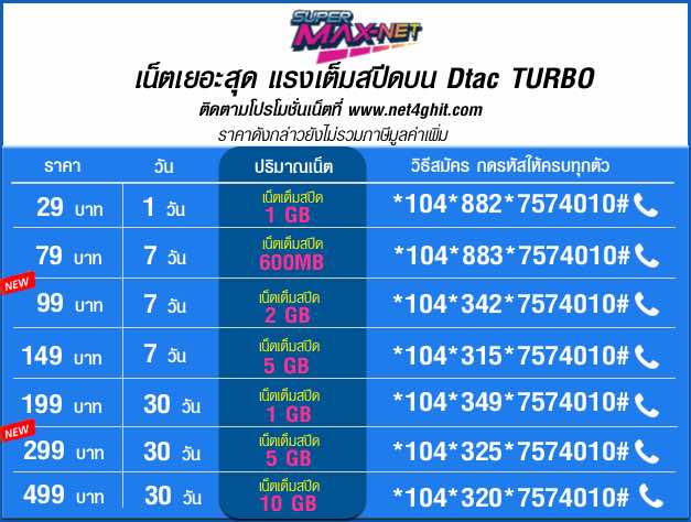 Super Max-Net เน็ตไม่ลดสปีด แรงเต็มสปีด dtac TURBO