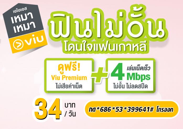 โปรเน็ต AIS 4Mbps เหมา เหมาเน็ตไม่จำกัด ชม Viu 1 วัน แพ็กเกจ AIS ดู viu พรีเมี่ยม เหมาเหมา ไม่เสียค่าเน็ต ✅ โปรเน็ต AIS 4Mbps เน็ตไม่จำกัด ✅ รับสิทธิ์ดู Viu ฟรี #ViuPremium ซีรีส์/วาไรตี้เอเชีย! ดูฟรีได้แล้วที่ Viu! ✅ ระยะเวลาการใช้งาน 1 วัน ✅ ค่าบริการ 34 บาท (รวมภาษี = 36.38 บาท) รหัสสมัครกด *686*53*399641#โทรออก