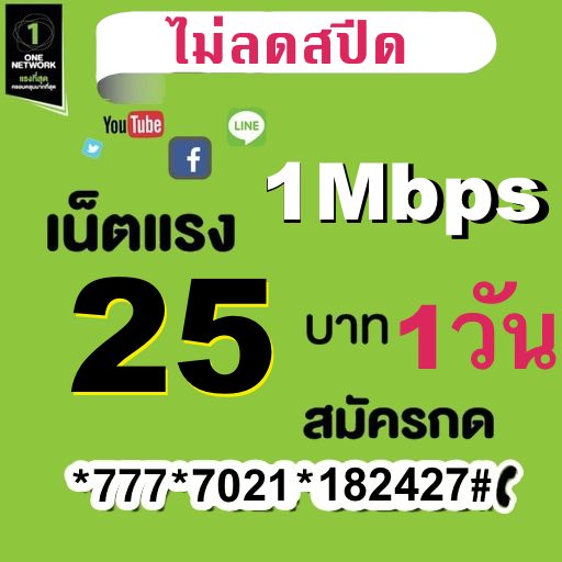 ใหม่ ! โปรเน็ตเอไอเอส วันทูคอล เน็ตไม่จำกัด ความเร็ว 1 Mbps ไม่ลดสปีด 1 วัน เพียง 25 บาท (รวม vat = 26.75 บาท)