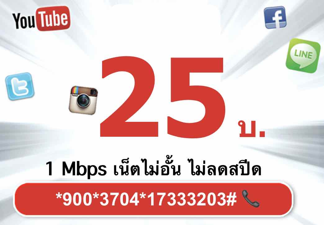 รายละเอียด : ⇨อินเตอร์เน็ตความเร็วสูงสุด 1 Mbps ตลอด ไม่จำกัด ⇨ค่าบริการเน็ตทรูมูฟ 25 บาท (รวมภาษี 26.75 บาท) ⇨ระยะเวลาใช้งาน 1 วัน