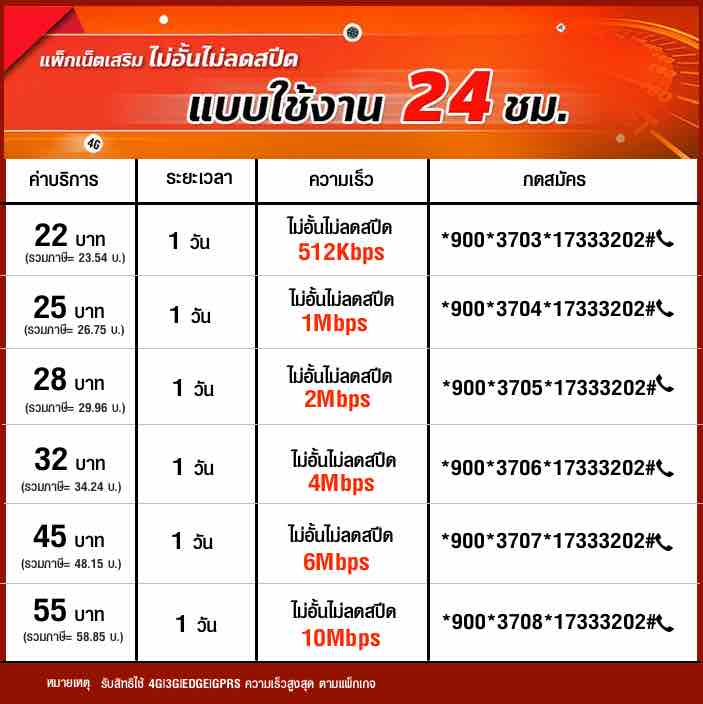 📌 เน็ตทรู 22 บาท / 24 ชม. เน็ตไม่จำกัด ความเร็ว 512 Kbps ไม่ลดสปีด ราคารวมภาษี 23.54 บาท กด *900*3703*17333202# 📞