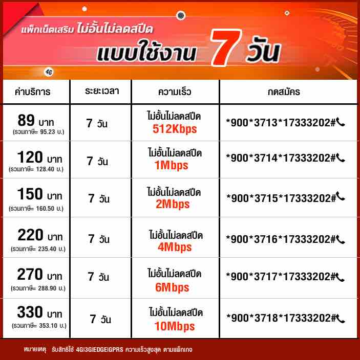 ✅ เน็ตทรู 220 บาท / 7 วัน เน็ตไม่จำกัด ความเร็ว 4 Mbps ไม่ลดสปีด ราคารวมภาษี 235.40 บาท กด *900*3716*17333202# 📞