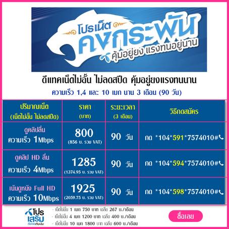 โปรเน็ตดีแทค 90 วัน สมัครได้ทั้งลูกค้าเก่า และลูกค้าใหม่ ได้ทุกซิม ดีแทค โปรเน็ตคงกระพัน คุ้มอยู่ยง คงทนอยู่นาน สมัครครั้งเดียวใช้เน็ตไม่จำกัดความเร็วไม่ลด สมัครแล้วใช้ระยะยาวได้เลย ตลอด 90 วัน