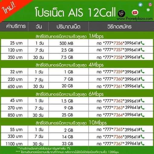 โปรเน็ต AIS วันทูคอล 1Mbps 25 บาท 1วัน 24 ชั่วโมง ค่าบริการ เพยง 25 บาท ( รวมภาษี 26.75 บาท ) สมัครกด *777*7356*399641#โทรออก ใช้สมัครได้ทั้งซิมเก่า และ ใหม่