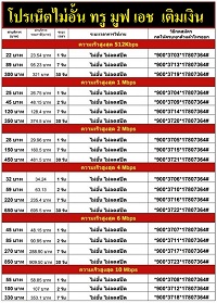 เน็ตไม่อั้น 4Mbps +โทรในเครือข่าย 7วัน กด *900*3768*17807364# 7 วัน 245.03 บาท