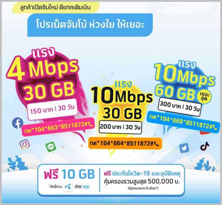 🔥แรงต่อ ไม่รอแล้วนะ กับเน็ตจัมโบ้ 10Mbps 60GB 300 บาท โปรดีแทค เน็ตแรงจุใจ ลูกค้าเปิดซิมใหม่