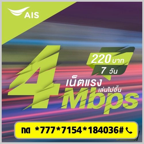 โปร AIS 4Mbps 7 วัน เป็นโปรแบบเล่นรายครั้ง ครบกำหนดไม่ได้ต่ออายุอัตโนมัติ ลูกค้าที่ต้องการใช้งานต่อให้ทำการกดสมัครใหม่ เพื่อป้องกันการลืม สามารถบันทึก รหัส *777*7154*184036# ไว้ในมือถือของท่านเพื่อสะดวกในการสมัครครั้งต่อๆ ไป