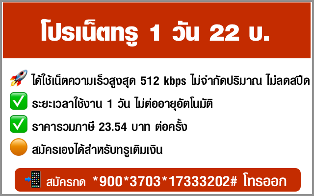 Tag: เน็ตทรู 22 บาท ,โปรเน็ตทรู 22 บาท,เน็ตทรูไม่จำกัด 22 บาท,โปรเน็ตทรู 22 บาท รายวัน,เน็ตทรู1วัน,เน็ตทรู รายวัน 22 บาท