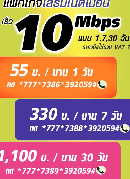 - เน็ต AIS 10mbps 7วัน 330 บาท กด *777*7388*184036# โทรออก