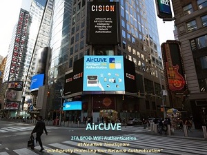 รูปภาพ - https://mma.prnewswire.com/media/1310765/AirCUVE_TimeSQ.jpg คำบรรยายภาพ - โซลูชัน AirCUVE 2FA BYOD WiFi Authentication ที่นิวยอร์กไทม์สแควร์
