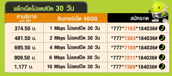 โปร AIS 30 วัน 650 บาท เน็ตไม่อั้น ความเร็ว 4 Mbps สมัครเน็ต AIS 4Mbps 30 วัน 650 บาท 📲 สมัครกด *777*7159*184036# โทรออก 🚀 ใช้งานเน็ต AIS 4G|3G ความเร็ว 4Mbps ไม่จำกัด รายเดือน ✅ ระยะเวลาใช้งาน 30 วัน ✅ ราคา 650 บาท (รวมภาษี 695.50 บาท) 🟠 สำหรับลูกค้า AIS แบบเติมเงิน