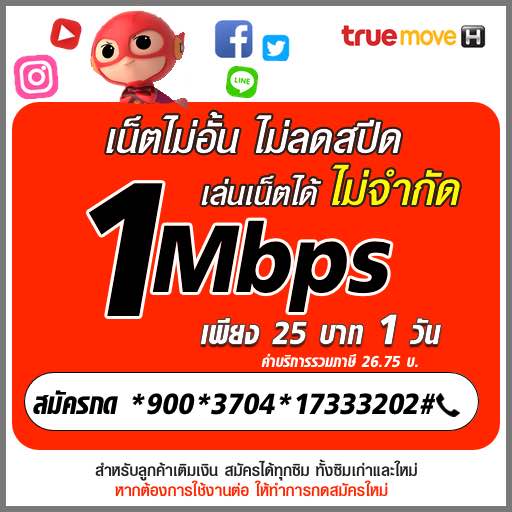 โปรเน็ตทรู 2 Mbps ไม่อั้นไม่ลดสปีด 28 บาท 1 วัน กดสมัคร *900*3705*17333202# 📞 รายละเอียด : เน็ตทรูไม่อั้นไม่ลดสปีด 1 วัน 28 บาท ✅ โปรเน็ตทรูไม่อั้น 2Mbps ไม่ลดสปีด รายวัน 28 บาท ✅ ระยะเวลาใช้งาน 2 วัน ✅ ราคา 28 บาท (+ภาษี= 29.96 บ.) ✅ สำหรับลูกค้าทรูเติมเงิน __________________________