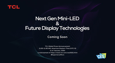 TCL จะนำเสนอนวัตกรรมด้าน Mini-LED และเทคโนโลยีจอแสดงผลแห่งอนาคตในระหว่างกิจกรรม CES 2021 Global Press Announcement ซึ่งจะมีขึ้นในวันที่ 11 ม.ค. โดยคาดว่าจะสามารถดึงดูดความสนใจจากสื่อมวลชนและลูกค้าในภาคอุตสาหกรรมอิเล็กทรอนิกส์เป็นอย่างมาก