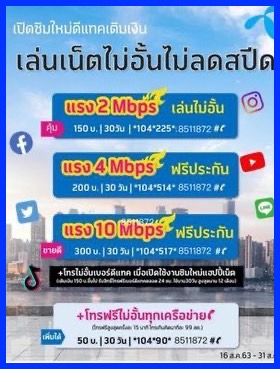 โปรเน็ต ดีแทค 10 Mbps สำหรับซิมใหม่ 1 เดือน 30 วัน ต่ออายุทุก 30 วันนาน 6 เดือน ๆ 300 บาท เล่นเน็ตไม่อั้น ไม่ลดสปี ความเร็วสูงสุด 10 Mbps ค่าบริการ เพียง 300 บาท ( รวมภาษีแล้ว ) สมัคกด *104*517*8511872# โทรออก