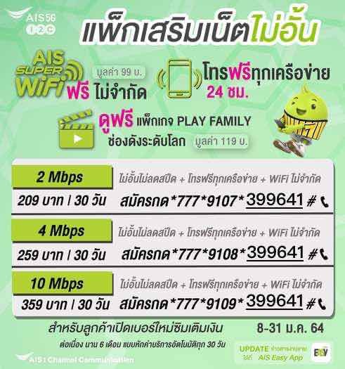 โปรเน็ต AIS 2Mbps 209 บาท 30 วัน สำหรับซิมใหม่ ไม่อัน ไม่ลดสปีด โทรฟรี ทุกเครือข่าย 24 ชั่วโมง ใช้งานได้ 30 วัน เน็ตความเร็วสูงสุด 2Mbps 4Mbps 10 Mbps ฟรี WiFi ไม่อั้น สำหรับซิมใหม่ ที่เปิดใช้ไม่เกิน 7 วัน สมัครเลย ==========================