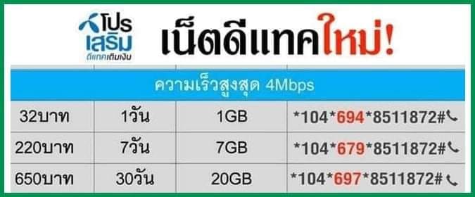 โปรเน็ต ดีแทค 4 Mbps 1 วัน 7 วัน 30 วัน
