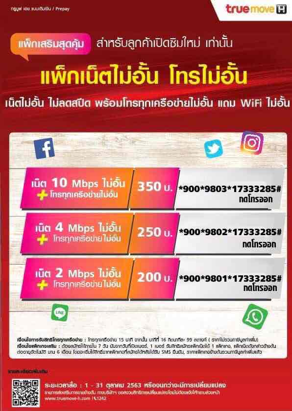 โปรเน็ตTRUE 2Mbps 4Mbps 10Mbps+โทรฟรีทุกเครือข่าย สำหรับซิมใหม่ ไม่อั้นไม่ลดสปีด สมัครเลย