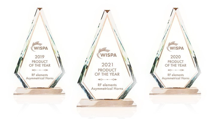 กลุ่มผลิตภัณฑ์เสาอากาศ Asymmetrical Horn ของ RF elements คว้ารางวัลผลิตภัณฑ์แห่งปี จากการโหวตของสมาชิกสมาคมผู้ให้บริการอินเทอร์เน็ตไร้สาย (WISPA) เป็นปีที่สามติดต่อกัน โดยพิธีมอบรางวัลได้มีขึ้นที่งาน WISPAPALOOZA 2021 ในเมืองลาสเวกัส รัฐเนวาดา