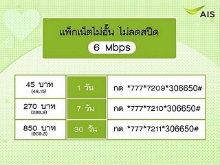 AIS เน็ตไม่จำกัด 6Mbps รายวัน รายสัปดาห์ และ 30วัน