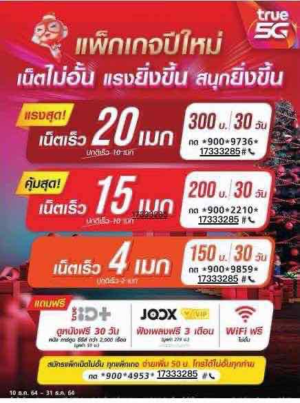 โปรเน็ตทรูเน็ตไม่ลดสปีด ราคาพิเศษ รายเดือน ลูกค้าระบบเติมเงินที่เปิดซิมใหม่ 📆เริ่มวันที่ : 10 - 31 ธันวาคม 2564 ➡️ เน็ตไม่อั้นเต็มสปีด ความเร็ว 20 Mbps ใช้ได้นาน 30 วัน ราคา 300 บาท (รวมภาษีแล้ว) กดสมัคร *900*9736*17333285# โทรออก __________________________ ➡️ เน็ตไม่อั้นไม่ลดสปีด 15 Mbps.(ปกติเน็ต 10 เมก) ใช้ได้นาน 30 วัน ราคา 200 บาท (รวมภาษีแล้ว) กดสมัคร *900*2210*17333285# โทรออก __________________________ ➡️ เน็ตไม่อั้นไม่ลดสปีด 4 Mbps. (ปกติเน็ต 2 เมก) ใช้ได้นาน 30 วัน ราคา 150 บาท (รวมภาษีแล้ว) กดสมัคร *900*9859*17333285# โทรออก __________________________ พิเศษ! สมัครแพ็กเกจเน็ตไม่อั้น ทุกแพ็กเกจ จ่ายเพิ่ม 50 บาท โทรได้ไม่อั้นทุกค่าย กดสมัคร *900*4953*17333285# โทรออก __________________________ รายละเอียดเพิ่มเติม - สมัครได้ตั้งแต่วันที่ 10-31 ธันวาคม 2564 - เฉพาะลูกค้าทรูที่ทำการเปิดเบอร์ใหม่เท่านั้น - แพ็กเกจต่ออายุอัตโนมัตินาน 6 เดือน จากนั้นความเร็วจะปรับเป็นความเร็วปกติ (แถมฟรี แพ็กทรูไอดี 6 เดือนแรกที่ต่ออายุสำเร็จ)