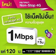 เน็ตเต็มสปีด AIS รายสัปดาห์ 119 บาท เน็ตเต็มสปีด 3 GB สมัครกด *900*7048*306650# โทรออก